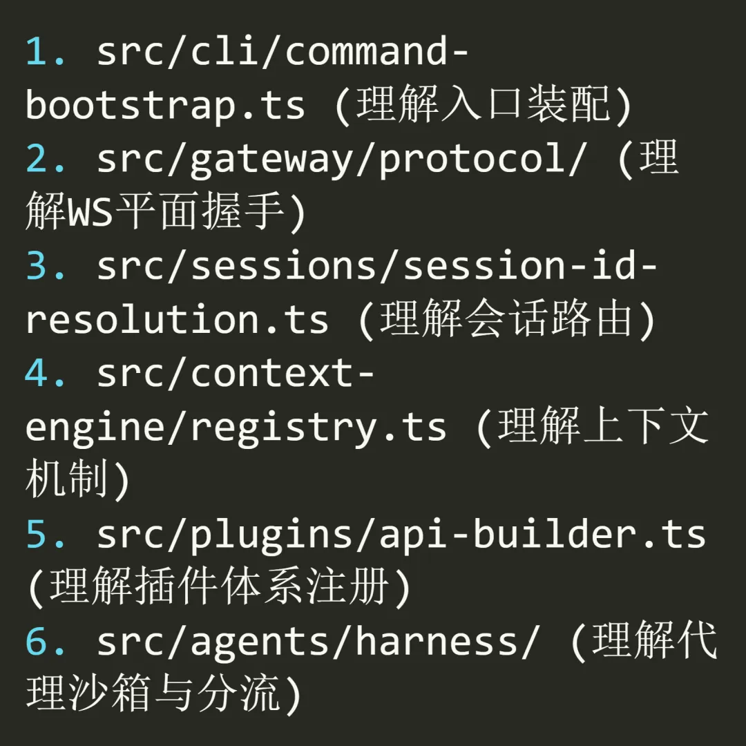 改造建议:想加能力走PluginSDK注册;想改行为动Context-engine与Sessions;最后再碰Gateway协议层。