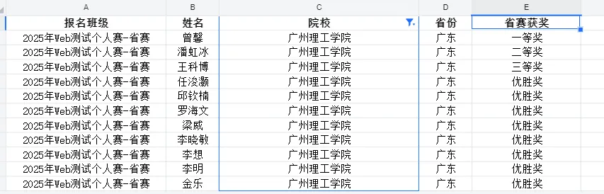 本次省赛中,人工智能学院学子在软件测试领域展现了扎实的理论功底与创新能力。曾馨同学凭借对Web应用安全测试的深度解析与自动化测试框架的高效应用,从全省参赛选手中脱颖而出,荣获一等奖;潘虹冰、朱定基两位同学在性能测试与缺陷定位环节表现突出,双双斩获二等奖。此外,王科博同学获三等奖,任浚灏、邱钦楠、罗海文等9名同学获优胜奖,覆盖了软件测试流程设计、测试用例编写、测试工具使用等多个核心模块,体现了学院“全链条、分层级”的软件测试人才培养成效。