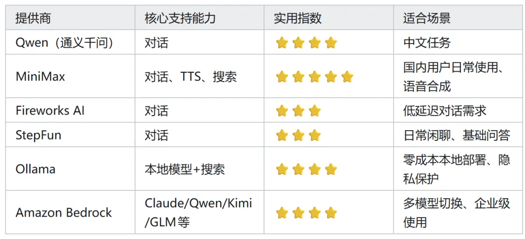 配合之前已经支持的阿里云、硅基流动,现在国内用户不需要任何外网条件,本地全跑通。