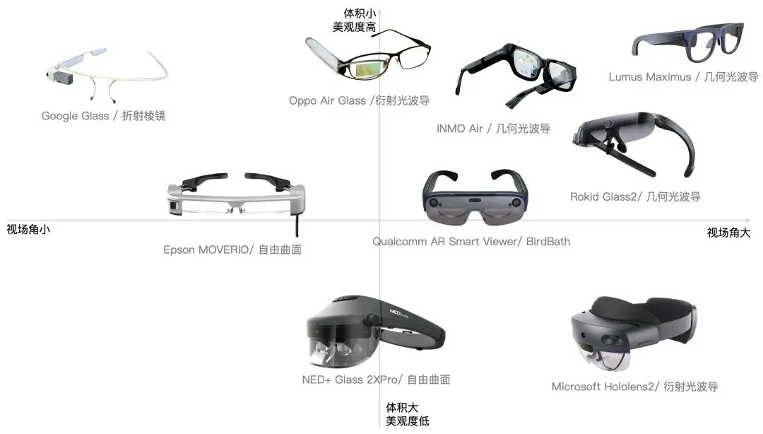 在技术路线上,行业已形成明确分水岭:Rokid、雷鸟创新等国内厂商,选择衍射光波导+MicroLED的高端方案,这是当前体验最优、技术难度最高的路径,依赖纳米级光波导镜片刻蚀、微米级MicroLED灯珠切割等尖端材料工艺;Meta采用几何光波导+LCoS的保守方案,技术成熟但视场角、轻薄化存在先天缺陷;谷歌、苹果首款产品则暂弃屏幕,仅保留语音交互,妥协于材料与工艺的现有瓶颈。