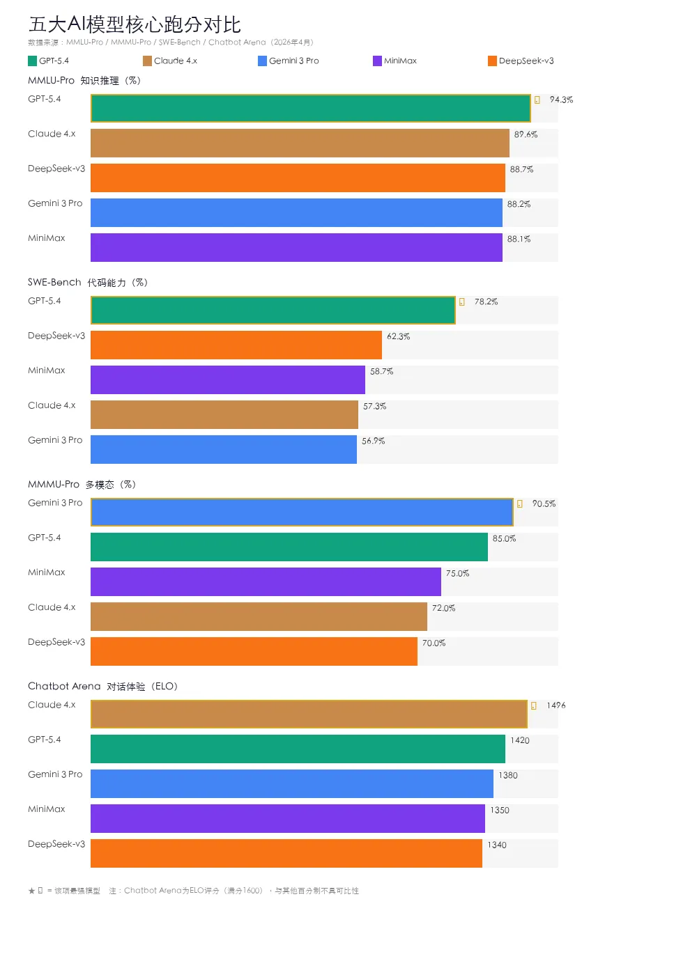 结论:Claude擅长对话体验,Gemini多模态最强,GPT综合知识最高,DeepSeek数学代码性价比高。没有全能冠军,根据需求选。