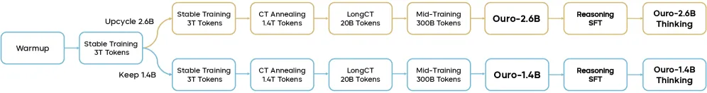 Ouro选择这个规模并非偶然。传统CoT推理将"思考"推迟到后训练阶段,实际上浪费了预训练数据中蕴含的推理信号。而Ouro的LoopLM机制直接在预训练阶段引入循环推理,让模型在吃进每个token时,都已经在"暗中练习"如何推理。这7.7T tokens不仅是知识灌入的过程,更是推理能力从零生长的过程。
