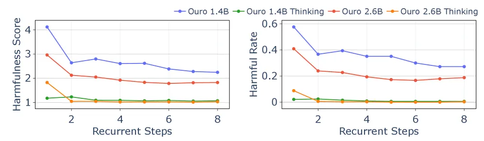 一个可能的解释在于循环推理的结构特性。在隐空间中的迭代推理为模型提供了多次"自我审查"的机会,每次循环迭代都可以被视为一次隐式的安全检查。这类似于人类在表达观点前的内心斟酌过程。