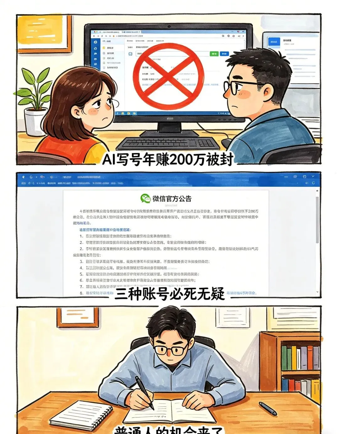 4 月 12 日,整个自媒体圈都炸了,那个号称 "用 AI 写公众号年赚 200 万" 的深圳夫妻账号,被微信官方永久封禁了。