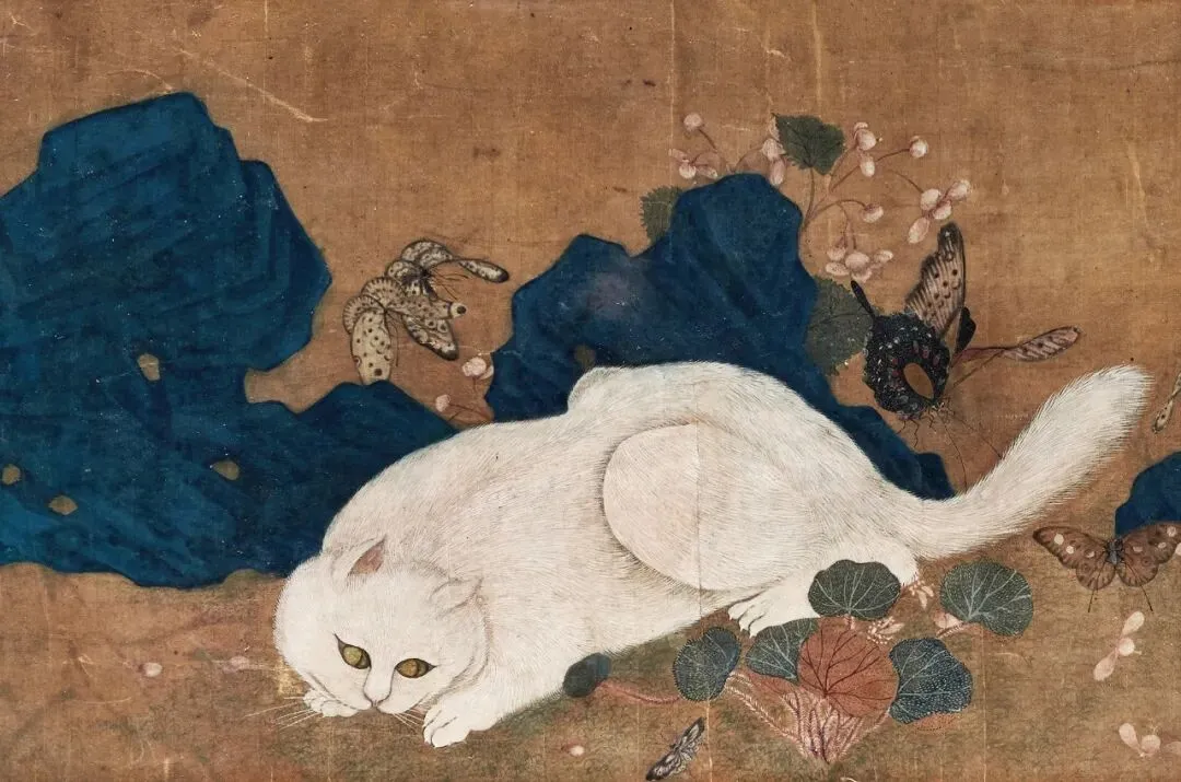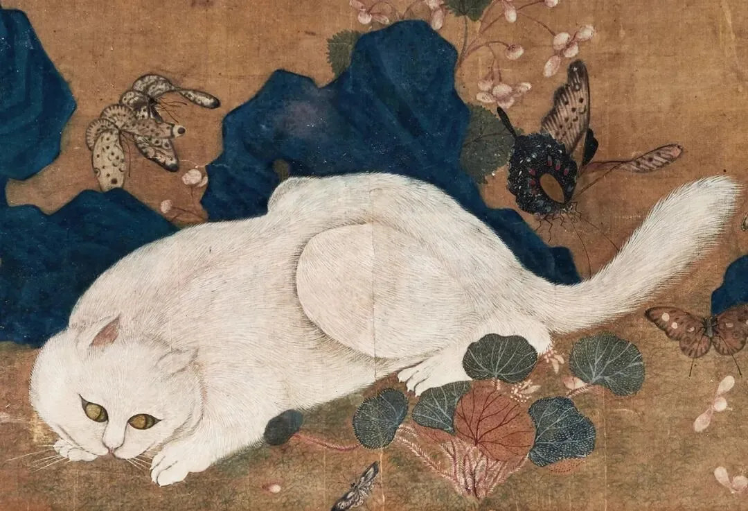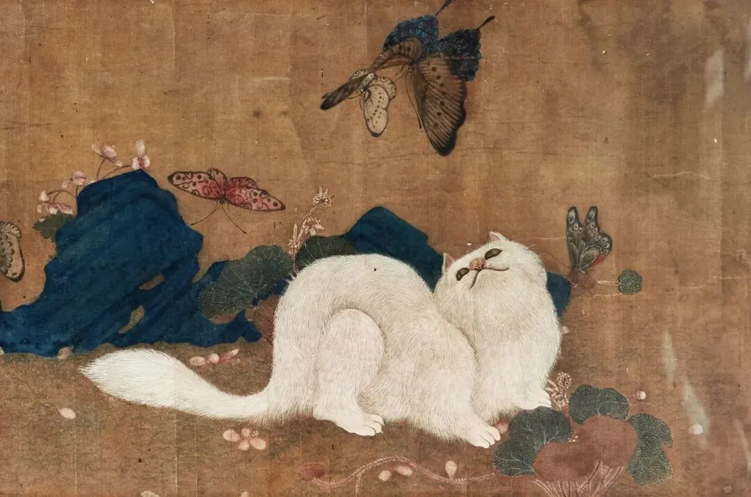 神韵,远不止于视觉的逼真,更在于画面之下,“猫蝶”即“耄耋”,是长寿的祝福。这个密码,根植于汉语的音韵、东方的吉祥文化。猫与蝶的关系,不是随机的。猫的“凝视”中有好奇、有捕猎的天性,也有一种被驯化后的“戏耍”感;蝶的“翩跹”中有危险,也有无视危险的优雅。这是一种被精心设计的、充满张力的戏剧关系,讲述着自然界的法则与宫廷闲趣。