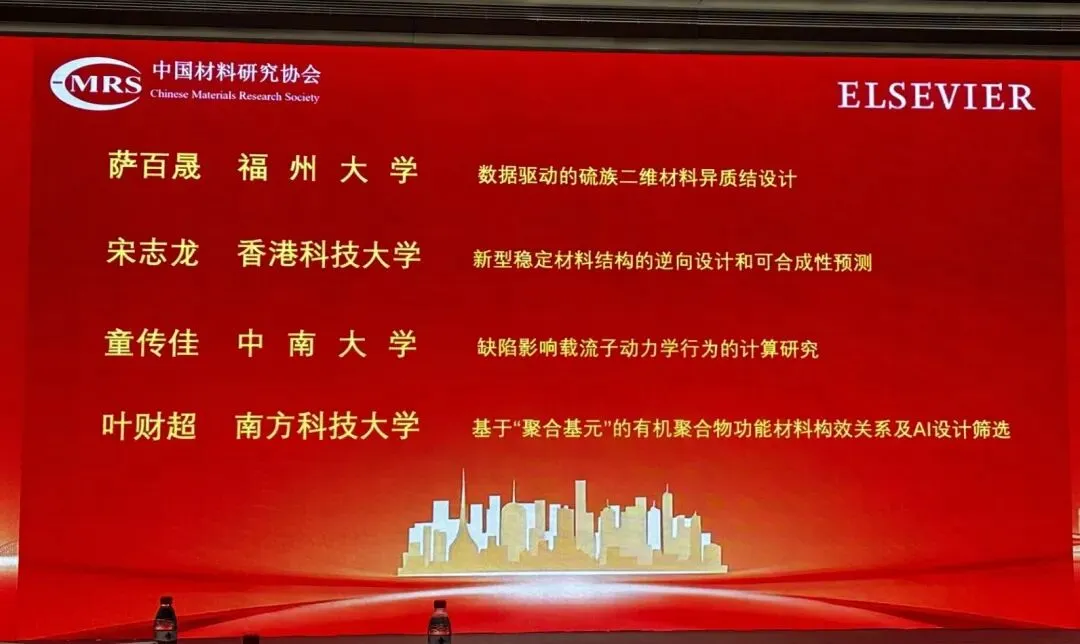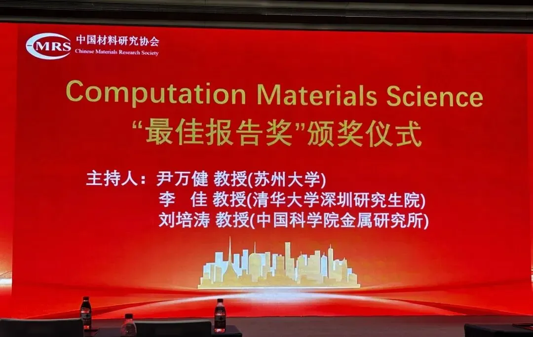 近日,Computational Materials Science(COMMAT)在首届中国 “AI+新材料” 大会论坛一 “AI智能材料设计” 中赞助设立最佳报告奖(Best Presentation Award),表彰在相关研究方向中表现突出的青年学者。该奖项于会议现场颁发,颁奖仪式由尹万健教授(苏州大学)、李佳教授(清华大学深圳研究生院)和刘培涛教授(中国科学院金属研究所)共同主持。