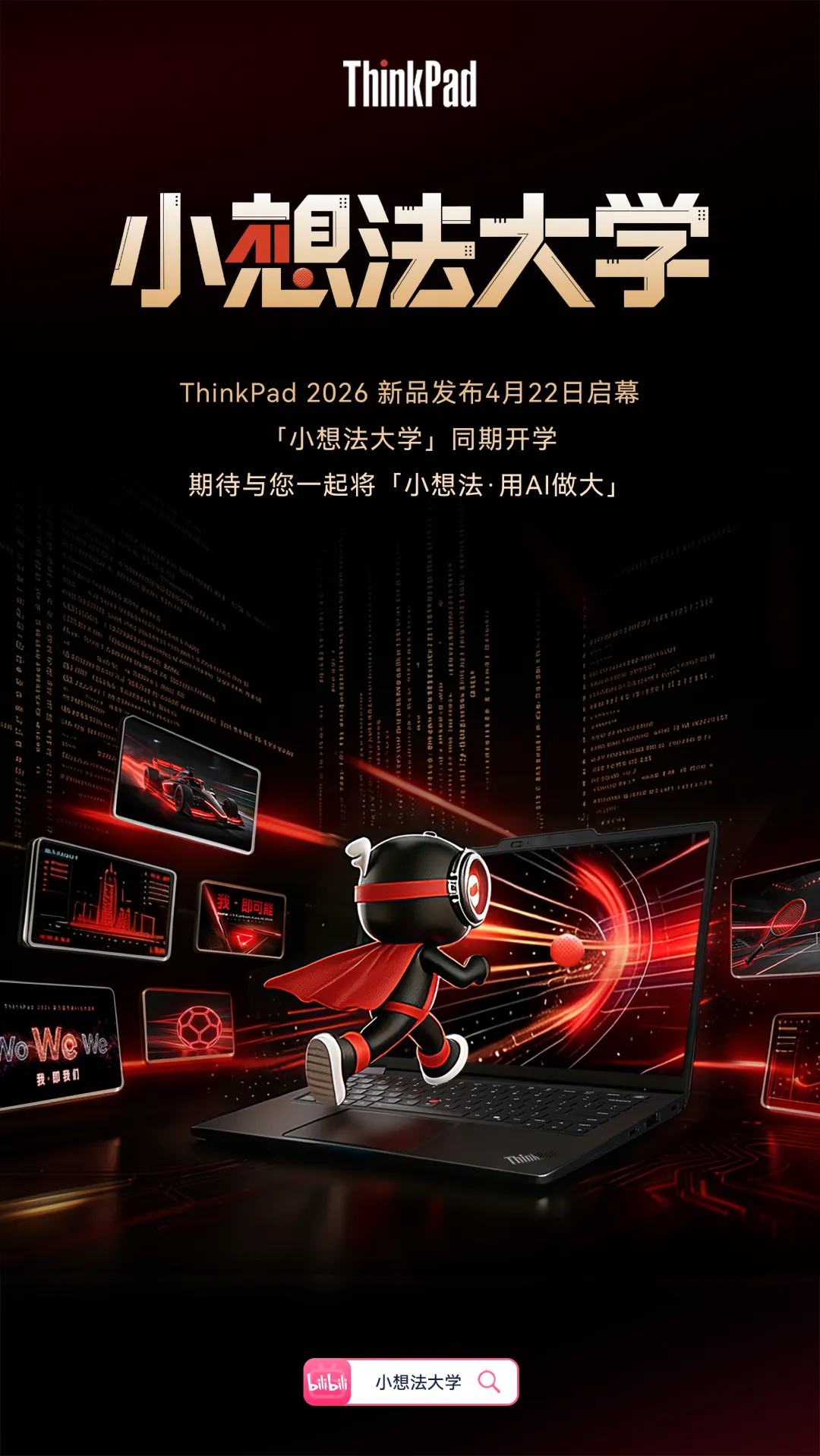 小想法 · 用AI做大每一个微小的灵感,都值得被世界看见。当「我」的思考连接「我们」的力量,AI让可能发生。👀 关注ThinkPad新品发布🎓 解锁你的「小想法大学」圆梦席位📅 4月22日,开学见!点击阅读原文,尊享宠粉时刻#ThinkPad #小想法大学 #ThinkPadAIPC #ThinkPad2026新品发布