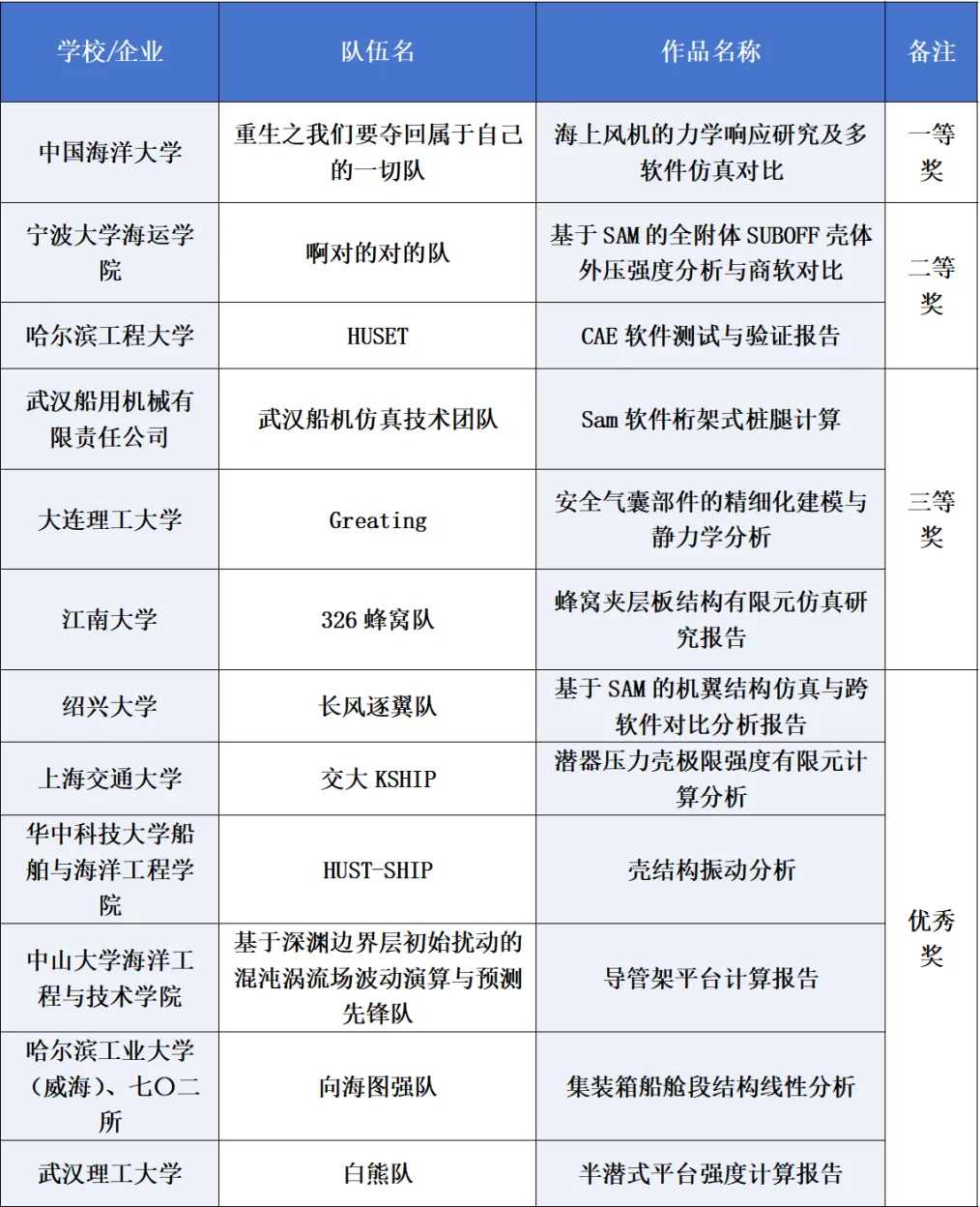 大赛以“仿真驱动创新,自主筑基未来”为主题,聚焦海洋结构分析通用软件SAM,通过“以赛促教、以赛促学、以赛促研、以赛促创”的模式,让国产CAE软件真正走进高校、走进科研实践。