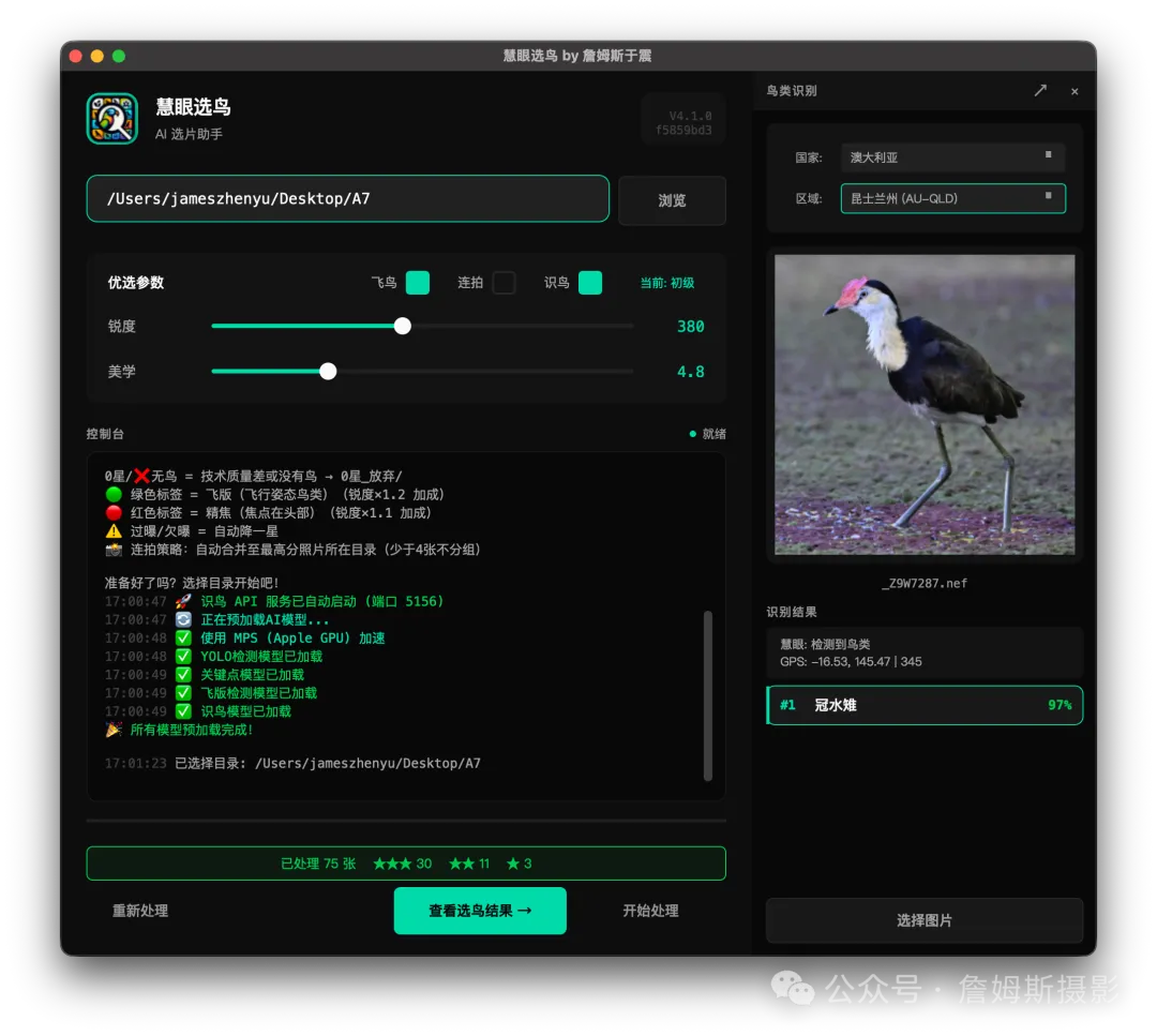 如果你每次出去拍鸟都要花两三个小时在选片上,SuperPicky.APP 能把这个时间压缩到十分钟以内。