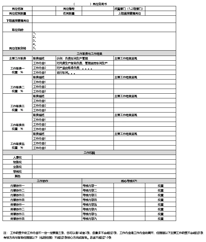 岗位说明书模板(Excel模板)本资料为《岗位说明书模板(Excel模板)》,欢迎加入会员领取!(查看领取方式:关注本公众号-->后台回复“领取模板”)::: 资料整理不易,请转发集赞或加入会员领取 :::声明:本资料来源于互联网,版权归原作者所有。如有侵犯您的版权,请联系25198734@qq.com,我们将立即处理。觉得不错,请点“赞”或者点击“在看”,谢谢↓↓↓