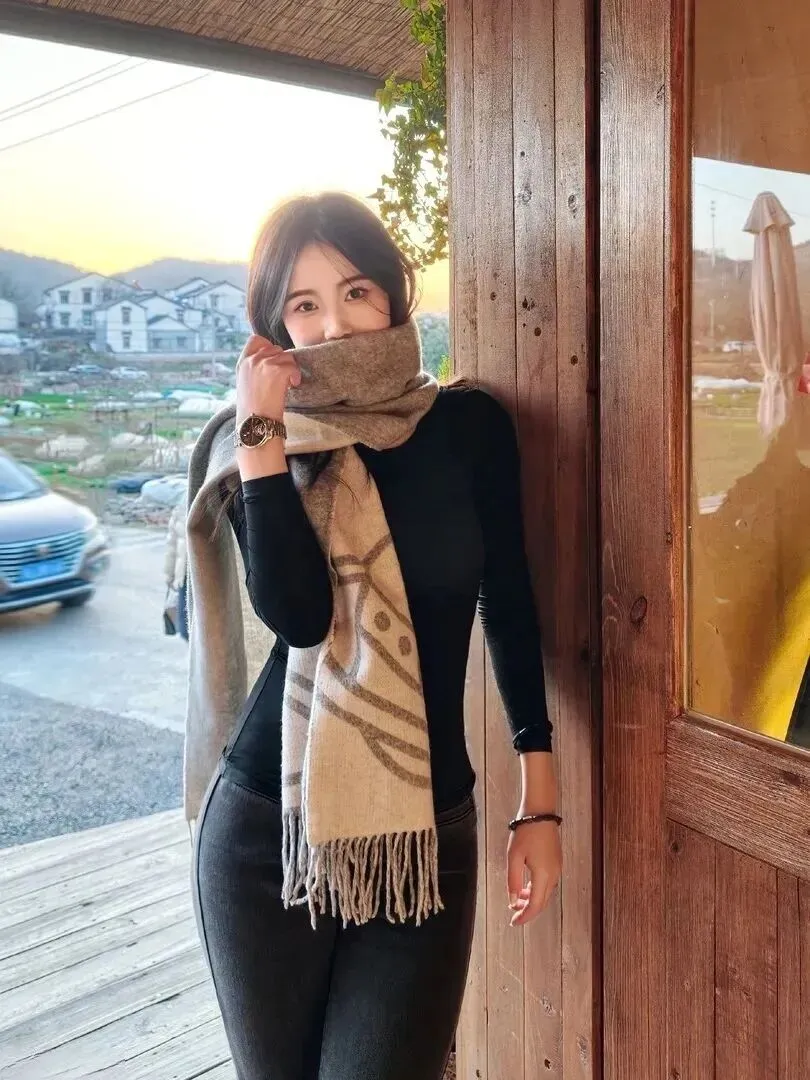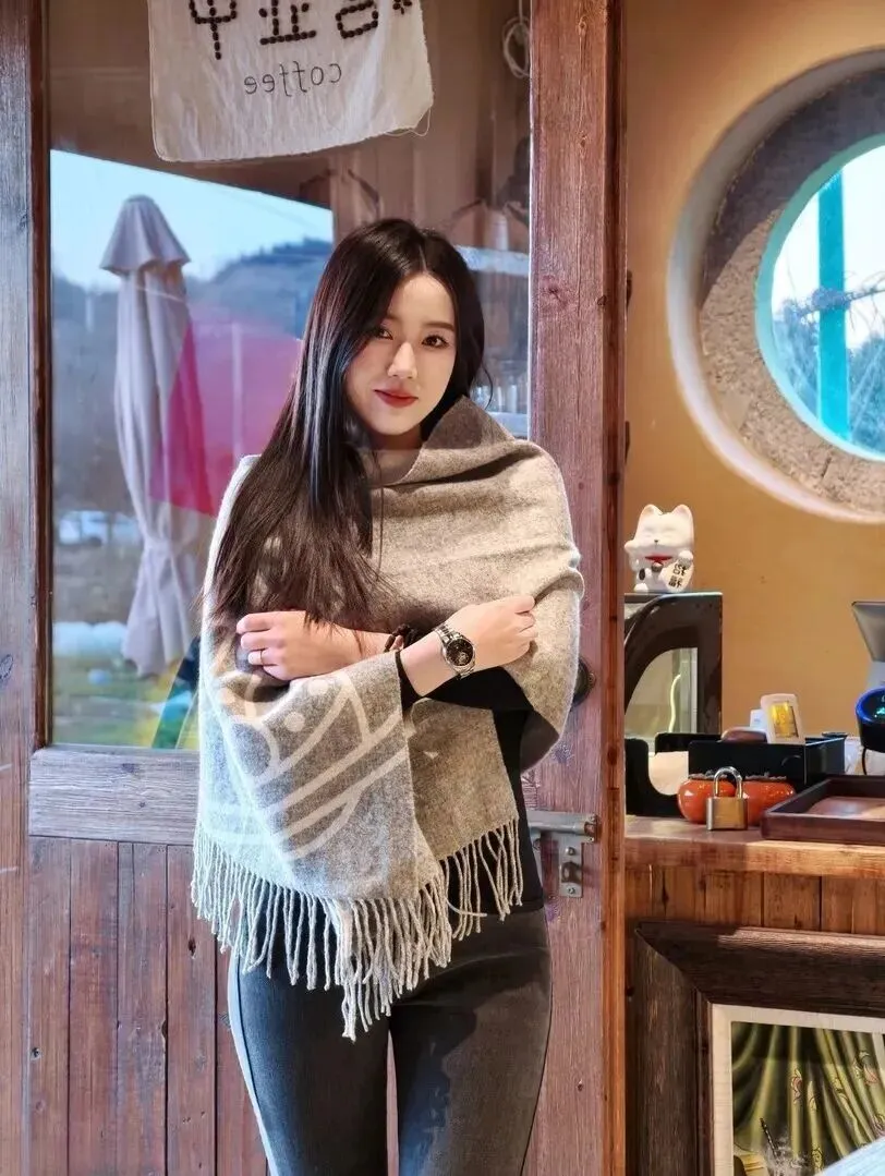 披肩的另一种方式是随便一围,就完事了。室内光线温和,人温雅。低头看书或者发呆,都会带给人这样的感受。不挑人,穿什么都有那种慵懒的韵味。