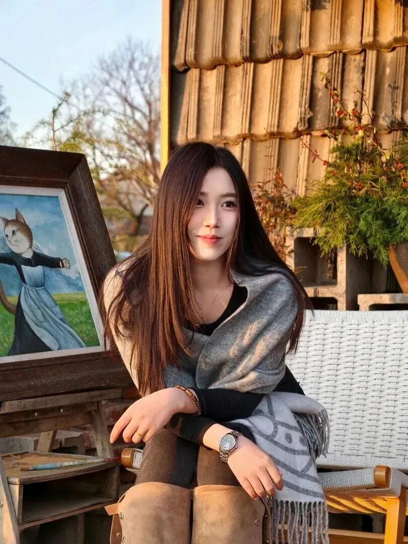 平时逛街时穿着什么?用一只灰色大披肩就足够了。披肩软软的、流苏边随风摆动,里面的黑色打底、外面的深灰色紧身裤舒服又复古。披肩上的浅灰色图案不张扬,但近看很有质感。手表选用银黑表盘,配搭棕色手链,细节满分。坐进木椅子之后,眼前的便不是一块寻常的猫画板,而是一片覆盖着猫咪图像以及绿叶的画片,并且营造出一种温润安宁的气息。
