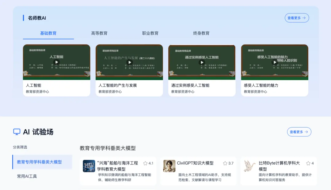 目前国家智慧教育公共服务平台上已经汇聚了超过1000门AI相关精品课程,覆盖基础教育到终身教育,免费开放。