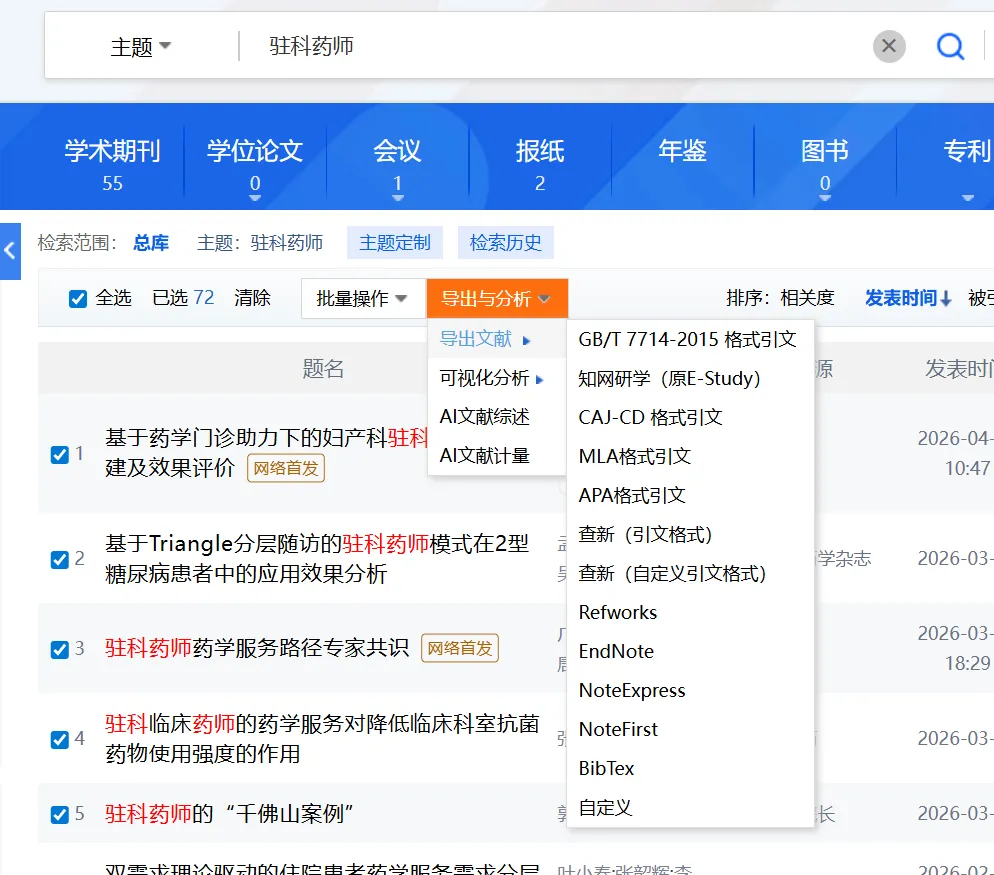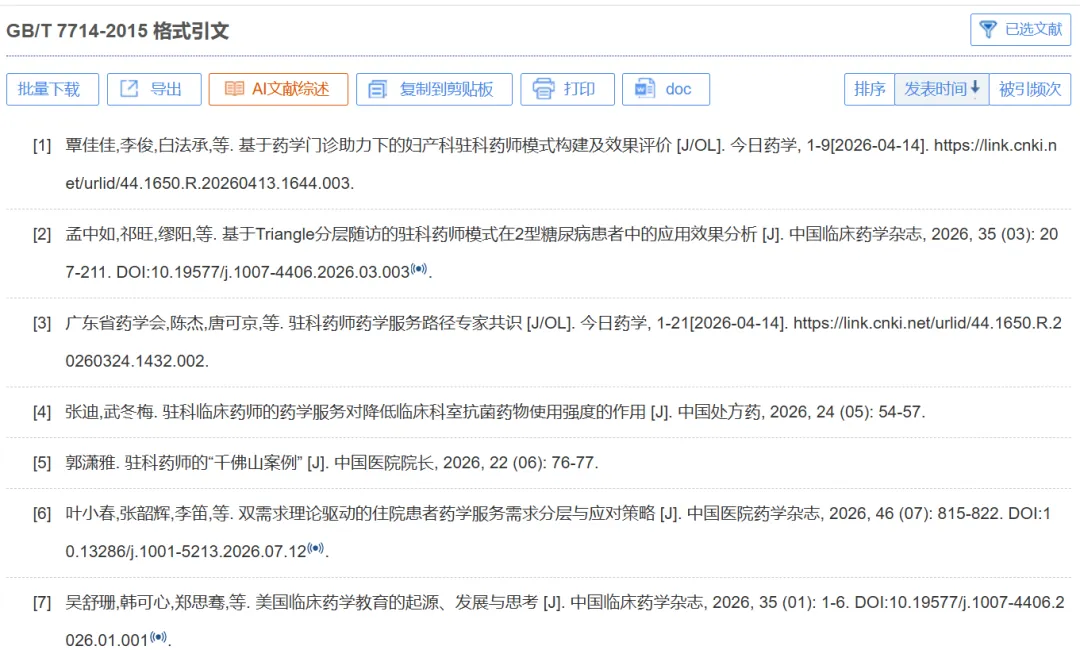 如何使用AI辅助整理思路 好几天没更新公众号了,最近几天在申报一个课题,每天都在奋笔疾书,同时也在研究怎么让AI更好地为咱们的科研服务,首先是立项依据的书写部分,如果让AI随意发挥,这后果简直不堪设想,看起来像这么回事,但是瞎编乱造的情况显著上升,你还得一个一个观点去核对,这耗费的时间不如自己亲自操刀。有没有什么好办法能避坑呢? 总结1:比如我最近申报的是一个关于驻科药师服务模式的课题,首先在CNKI中输入关键词:驻科药师,然后出来72篇文献,点击导出文献,选择GB/T 7714-2015格式引文。 然后就会出来这样的格式,选择复制到剪贴版,然后就可以将选择的文献全部复制粘贴到你选择的AI大模型里面,比如deepseek、Chatgpt等。 登录pubmed,我以clinical pharcist为关键词,当然会搜出来成千上万篇文献,您可以根据自己的需要进行主题词联合自由词的检索,这里就不再强调,然后pubmed页面中没有全选按钮,一页下来只能选10篇文章,一来你可以根据自己的需要在左边过滤器中根据条件进行筛选,另外点击最下方的show more results可显示更多的页面。选择好文献后点击“Save”按钮,最后选择“Create file”按钮,可以生成一个记事本, 这个记事本上就把你选中的这些文献的题目,PMID号还有DOI号全部显示出来了,直接把这些信息复制粘贴到AI大模型中,让AI帮你拟清思路,这样的情况下极大减少了幻觉以及胡诌的情况。 关于AI大模型的选择,如果在不知道哪些具体的文献表达了某个观点时使用Gemini3和Grok搜索到准确的真实文献概率更大,而deepseek在这个方面会弱一些,但是如果限定了文献后Gemini3和Grok的文字表达能力尤其是中文的表达能力不一定比deepseek强,豆包和KIMI和非常强大,其强大功能主要体现在输出画图代码的能力。 关于AI辅助科研,你有什么小妙招呢,欢迎一起来分享。
