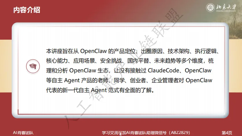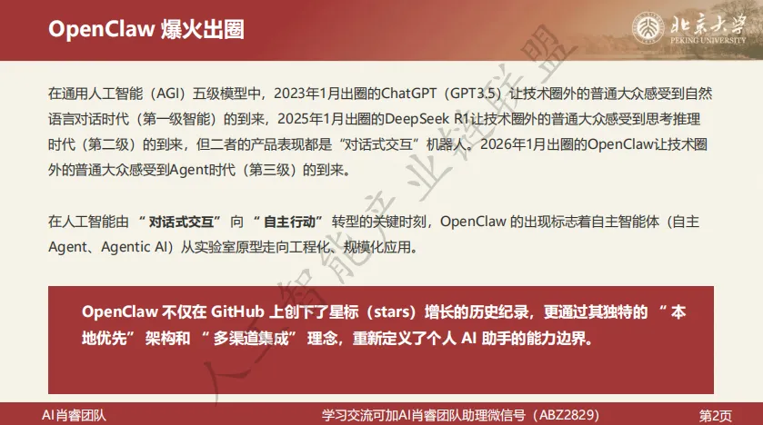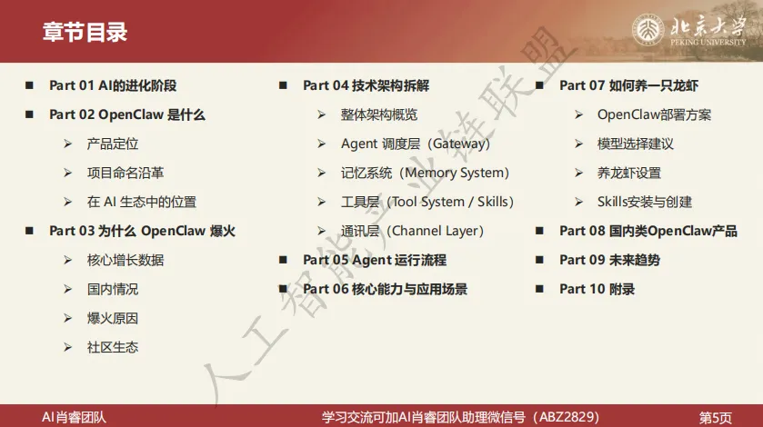 北京大学: 《OpenClaw001:龙虾使用入门-技术架构、生态、应用场景》 (完整版.pdf ) 以下仅展示部分内容 下载方式见文末
