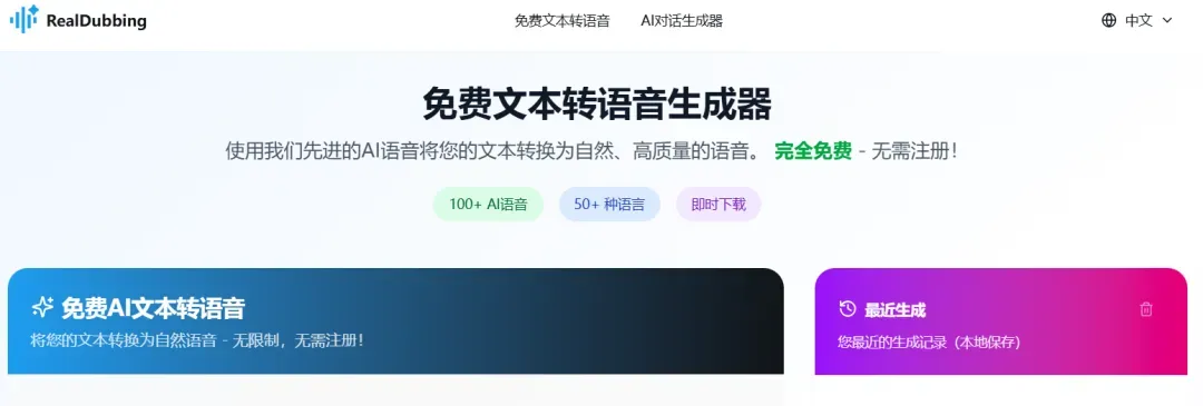 又一个机房可以用的AI工具:文本转语音,免登录免费。