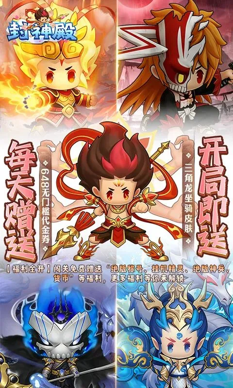 封神殿(0.1折每日送648无门槛代金券)1、【送代金券】每日免费赠送“648元无门槛代金券”可在游戏内任意充值货币档位、直购等礼包,绝不花1分钱2、【福利全开】闯关成功免费赠送“绝版称号、挂机精灵、绝版神兵、货币”等等等福利,更多福利等你来解锁3、【开服狂欢】完成BOSS目标免费领取“货币:石币*2000万”天赋技能书:天神讨逆、洪荒异兽:水·琅呀4、【免费寻宝】内设免费寻宝抽奖功能,每天都可免费抽奖概率获取大奖,还能获取积分兑换超强伙伴宠物5、【升级福利】达到对应等级免费领取“UR伙伴”“SSSR法器”“神级洗髓露”等等等福利6、【开局福利】开局即送:“三角龙坐骑皮肤”、钻石*6888、萌宠令*100、伙伴令*1007、【每日福利】每日免费赠送“代充币”可替代RMB任意充值购买游戏中直购礼包8、【签到福利】累计签到免费领取:稀世武器、珍惜翅膀、绝世伙伴、传说宠物9、【VIP特权】免费赠送VIP特权,可免费使用特权功能,领取特权礼包10、【新服福利】活动期间内挑战成功10层boss免费赠送终极大奖11、【免费时装】打boss拿套装,免费领取“主角炫酷时装”https://gweb.tsyule.cn/gameinfo-16098-hv1139200.html