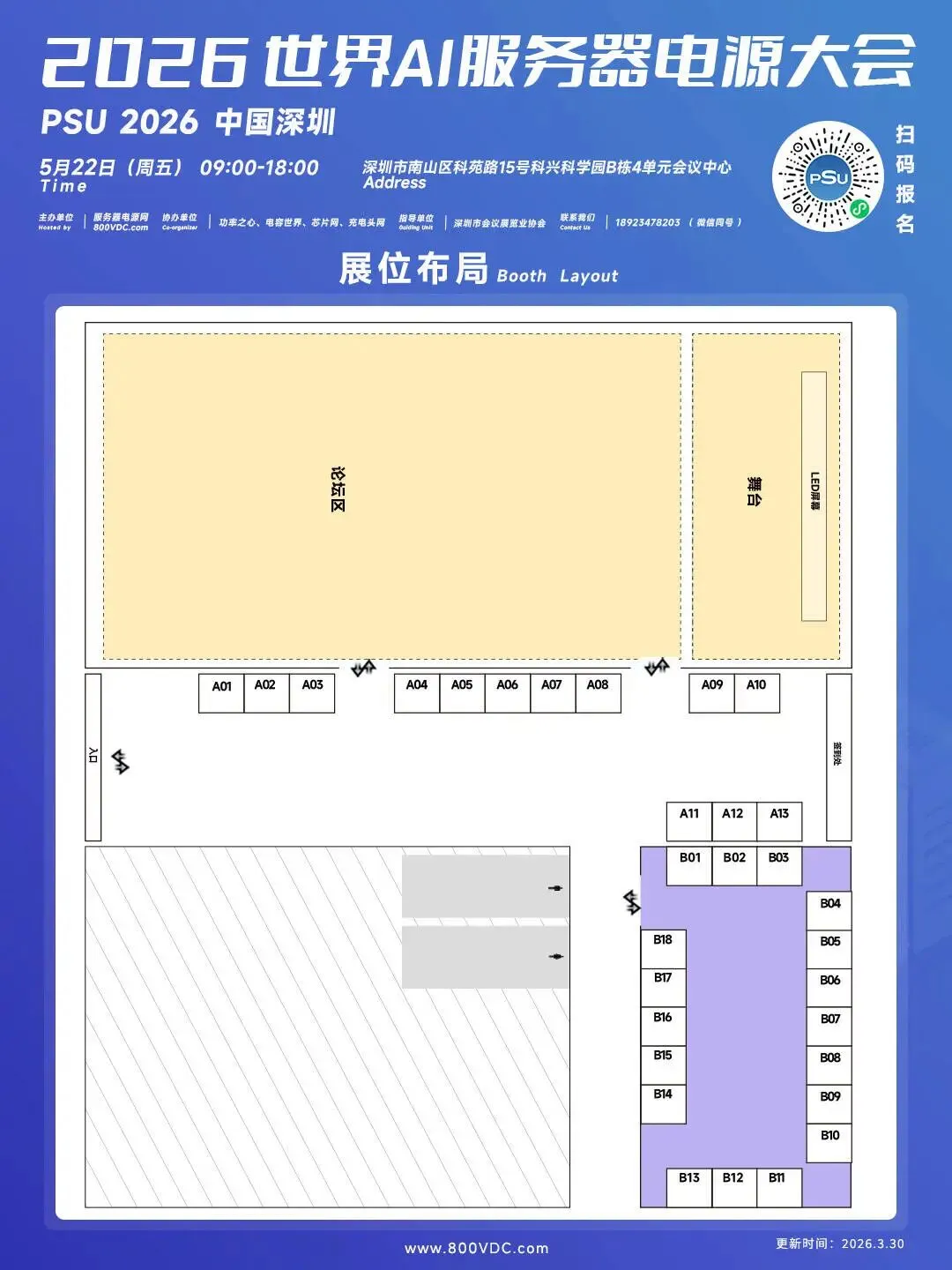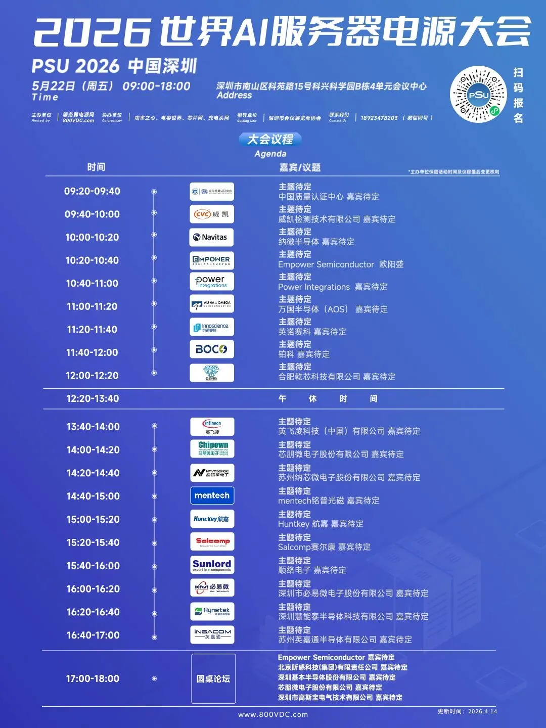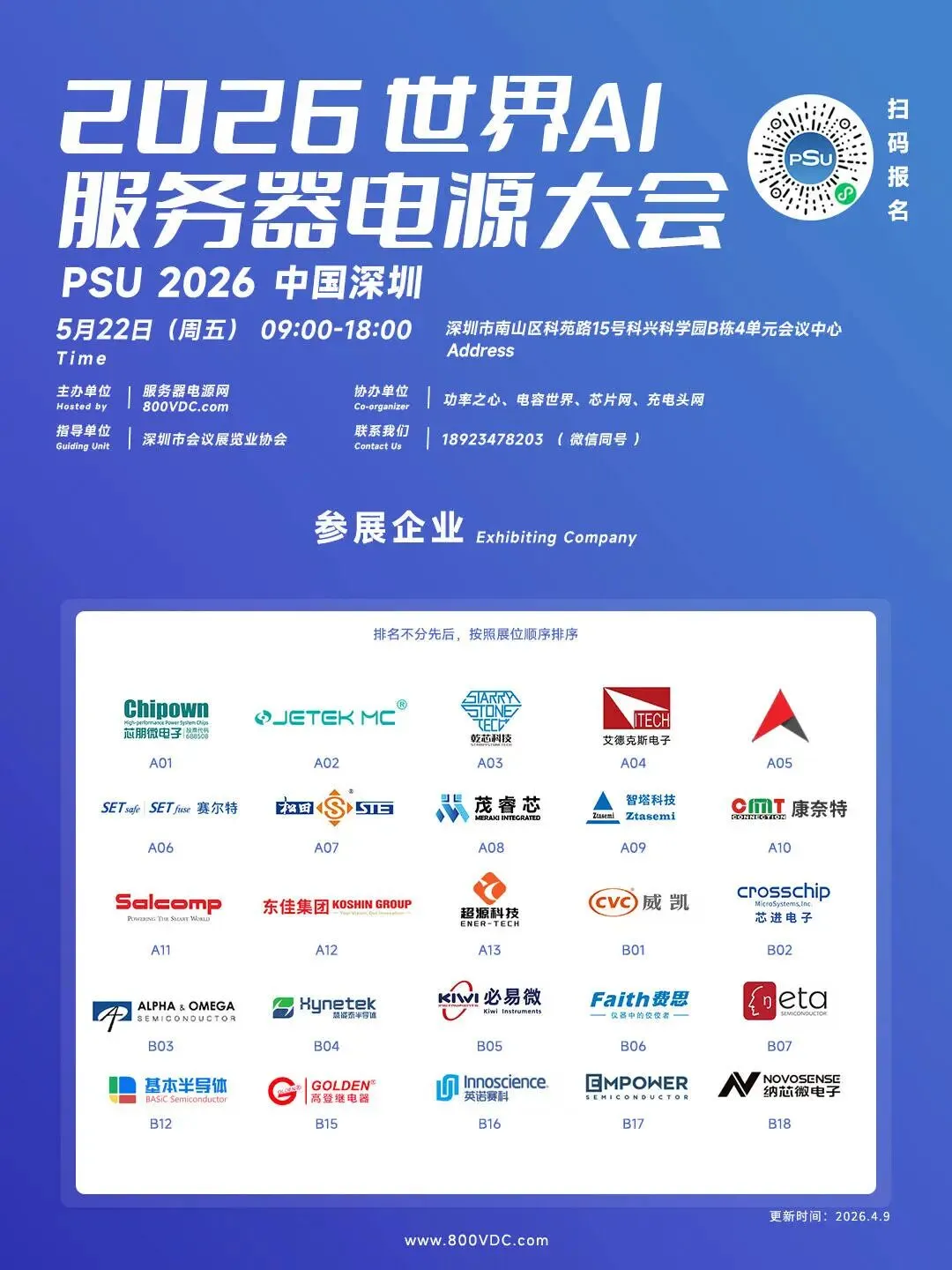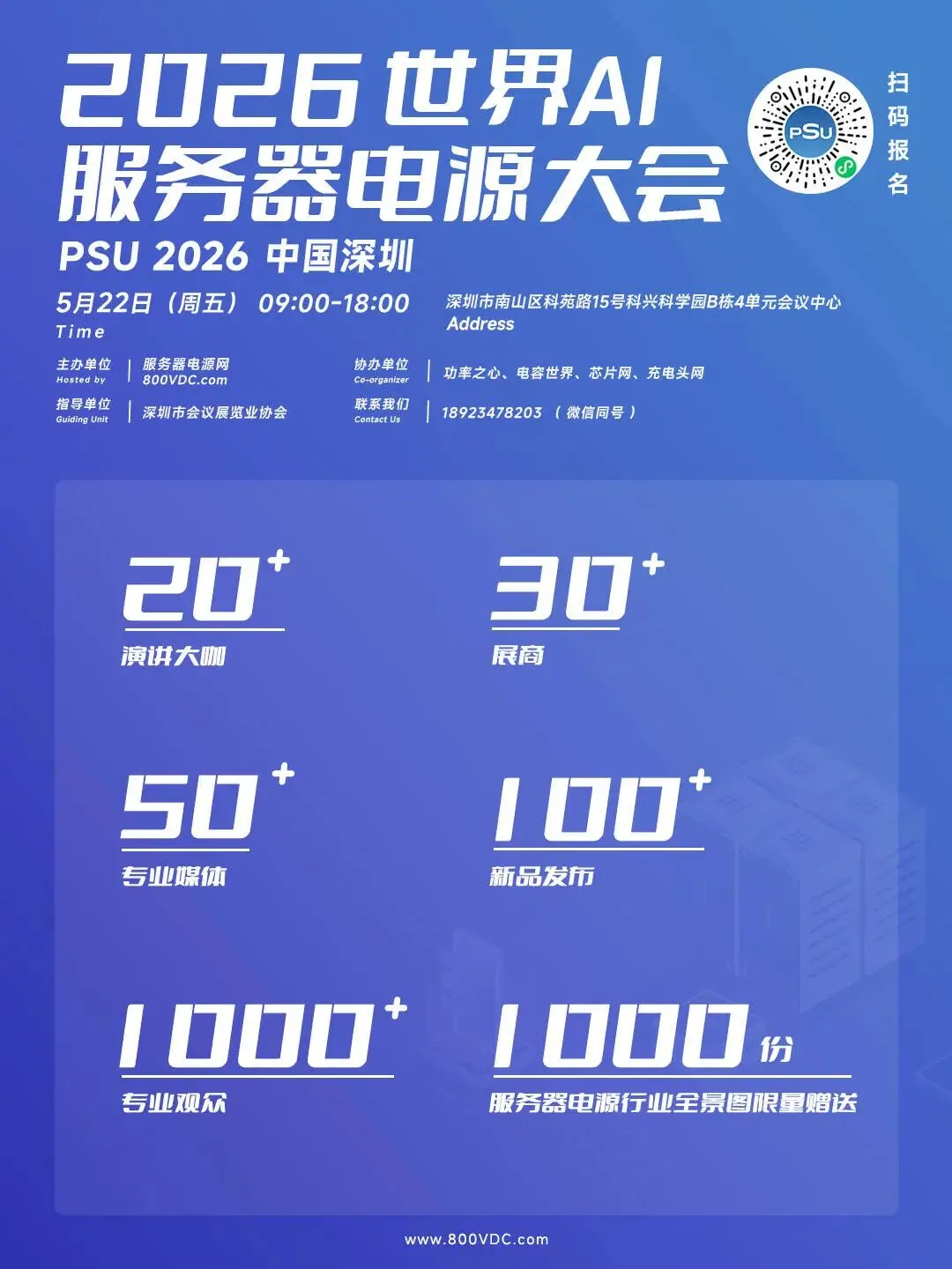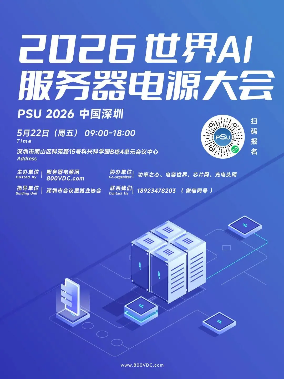 当 AI 大模型的算力需求持续飙升,绿色数据中心的 “降碳” 要求日益严苛,服务器电源产业正站在 “高功率密度 + 高效能” 的技术拐点上,由服务器电源网(800VDC.COM)主办的2026世界AI服务器电源大会将于 2026 年 5 月 22 日(周五)在深圳市南山区科苑路 15 号科兴科学园 B 栋 4 单元会议中心举办。