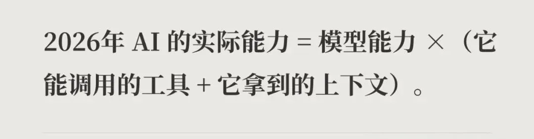 过去的2025一整年,从DeepSeek-R1发布开始,所有的中美大模型厂商都在相互努力竞分赶超,目的是提升大模型的输出质量,特别是在加入思维链之后,让大模型能能回答更多更复杂的问题,并且越来越往小参数高质量输出的方向上发展,包括蒸馏技术、更好的数据集和更好的训练算法,这个赛道的竞争目前仍在持续,后面我会讲到我对大模型发展的预测。截止到目前,大模型给我们的只有一个聊天框,但我们要的AI可不是一个聊天框而已,而是真正能应用到真实世界的各种应用需求,能够替代我们自动化接管各种任务的AI,所以就有了Agent的概念,一个利用大模型能力来自动处理任务的智能体。目前我见到的真正商业化成功的Agent,也只有Anthropic的Claude Code,但那也只是一个还没有从对话框的初级阶段里跳出来的Agent。这一切都因为,大模型(LLM)有两个天然缺陷:无法调用外部工具和没有记忆。我们目前使用的无论是小龙虾OpenClaw,还是新发布的Hermes,或是去年就火热的MCP和今年又流行的CLI和SKILL,本质上都是在用工程思路解决大模型的这两个天然缺陷。即通过整合大模型的智能化,突破有限的上下文限制增强记忆 + 自动调度外部工具。在可预见的2026整年,整个IT工业界都将围绕这两个问题提出各种解决方案和落地产品。用一句话总结,截止到今年底,整个AI展现出来的实际能力= 模型能力×(它能调用的工具+它拿到的上下文)。在目前大模型的能力下,为了提升上面括号中的内容,IT工业界已经有了共识,就是Harness Engineering(驾驭工程、约束工程)。2,Harness 本质上是一套强约束、结构化、可闭环、可追溯的 LLM 上下文交付机制