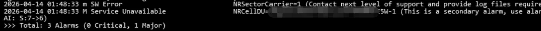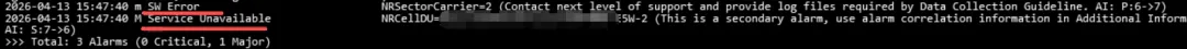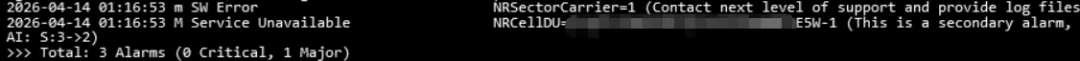 5G扇区-1上软件错误告警,1小区不可用,现象同原扇区-2,如下: