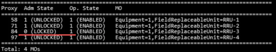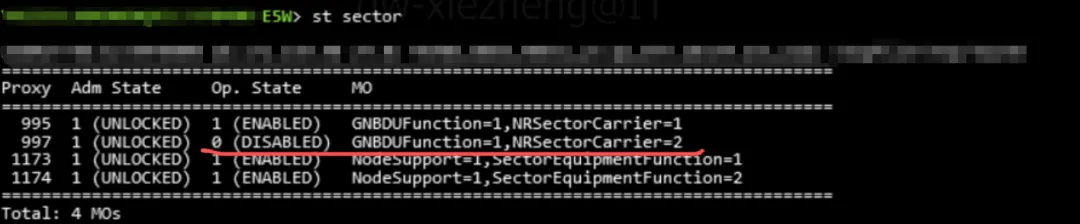 经查询,扇区-2状态DISABLED,而RRU状态正常,如下: