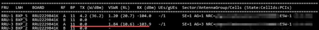 本次排查遵循上次拓展思路,将故障现象复现并转移,结合光路信息检测(如TX无发射、驻波值偏高等),进一步锁定RRU-3发射链路异常问题,而且只要RRU-3是激活态,故障现象就会复现,最终确认故障源头。
