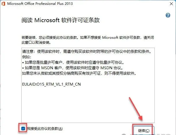 4.勾选【我接受此协议的条款】,点击【继续】。