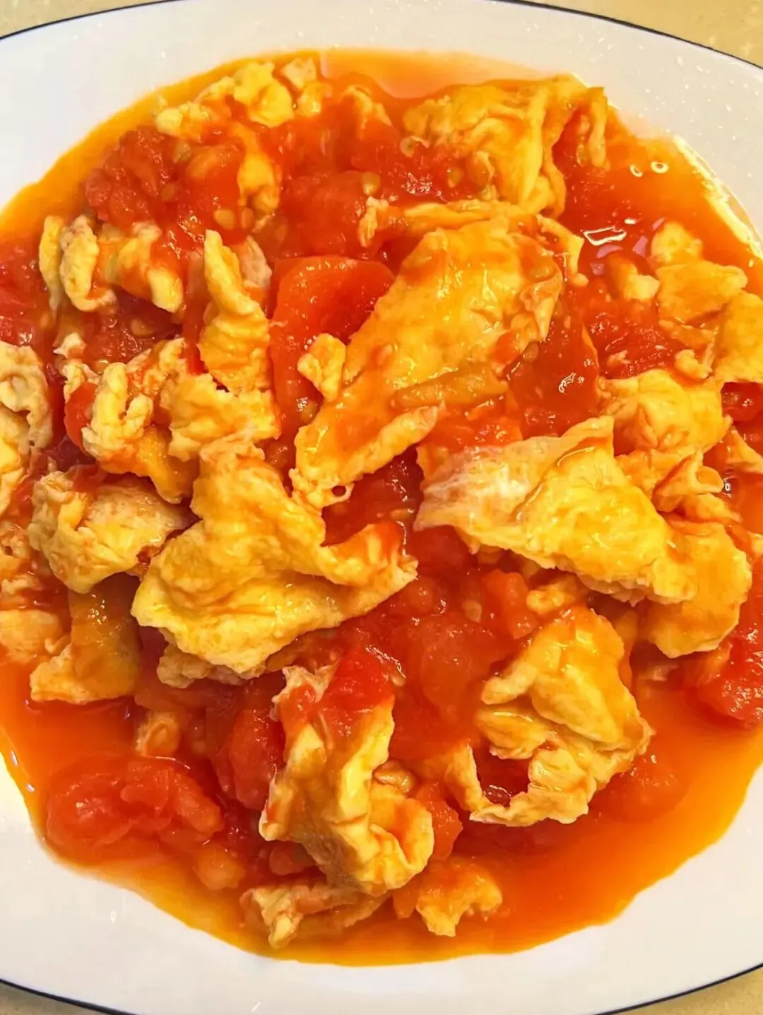 番茄在热油里“滋啦”绽开,酸甜的汁水裹着金黄的蛋液,铲子一翻,满屋都是家常的香。