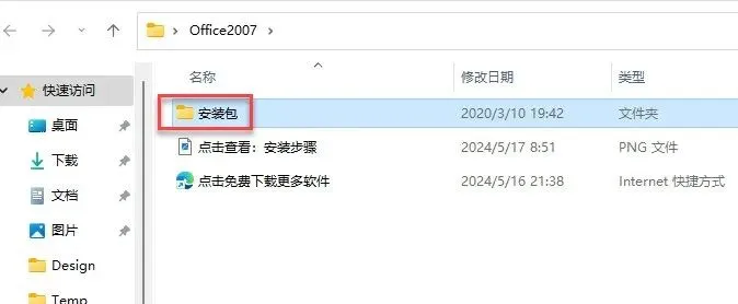 2.打开解压后的文件夹,双击打开【安装包】文件夹。