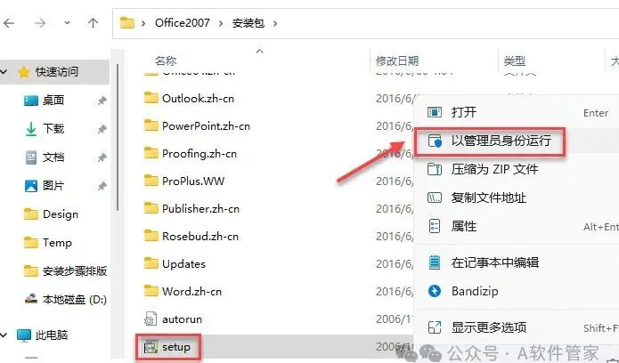 3.找到【setup】并选择,然后鼠标右键选择【以管理员身份运行】。