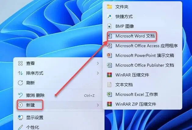 11.在桌面空白处,鼠标右击选择【新建】选择【Microsoft Word 文档】。如下图所示: