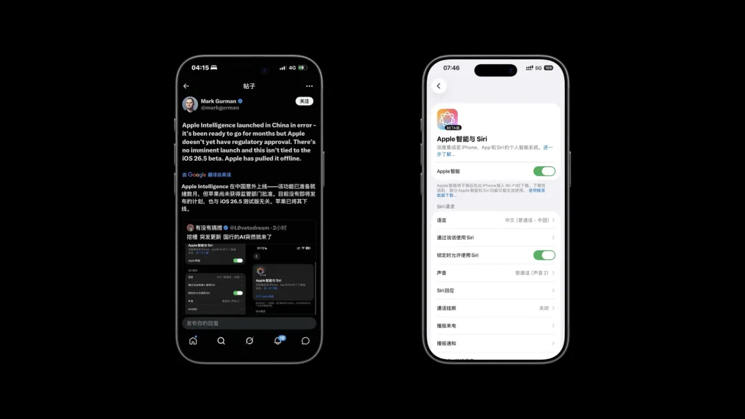 苹果智能:国内依旧没有上线,此前该功能曾短暂意外上线,随后便紧急下架,导致现阶段多数用户无法使用。截止到目前,苹果智能仍没有获得国内部分的审批。结合多方消息来看,苹果智能或将跟随 iOS 27 一起推送,iOS 27 测试版本预计最快 6月份发布。