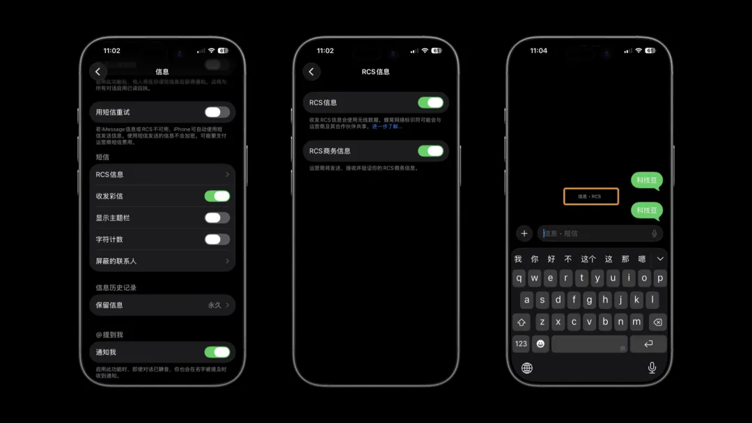 前往「设置_App_信息_RCS」 页面,开启功能后,发送的短信将会附带 RCS 标识,苹果会对发送的内容进行加密处理,聊天隐私会更加安全一些。