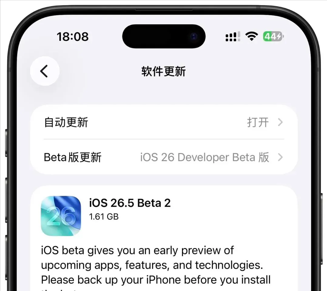 前两天苹果刚发布了iOS26.4.1修正版,今天凌晨苹果又发布了iOS26.5beta2测试版,相对于之前苹果发布系统的惯例,这次系统延迟了大约一周时间才发布,本次更新包大小为7.2G左右,内部版本号为23F5054h。从已更新的用户反馈来看,iOS 26.5 Beta2并未加入明显新功能,但新的问题却不少,是最不值得升级的版本!