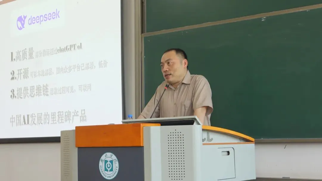 讲座伊始,王健海老师以人工智能领域的前沿发展趋势为切入点,系统阐释了 Deepseek 技术在论文撰写中的应用场景。他从 AI 的底层逻辑出发进行深度剖析,将抽象的技术概念转化为通俗易懂的知识。王健海老师不仅梳理推荐了国内外多款实用 AI 工具,还亲自演示了如何运用 AI 算法进行论文阅读、文献综述、实验数据整理等操作,帮助同学们提高论文撰写效率。通过生动的实操展示,同学们对AI技术的理解从表层认知深入到应用内核,切实掌握了相关操作方法。