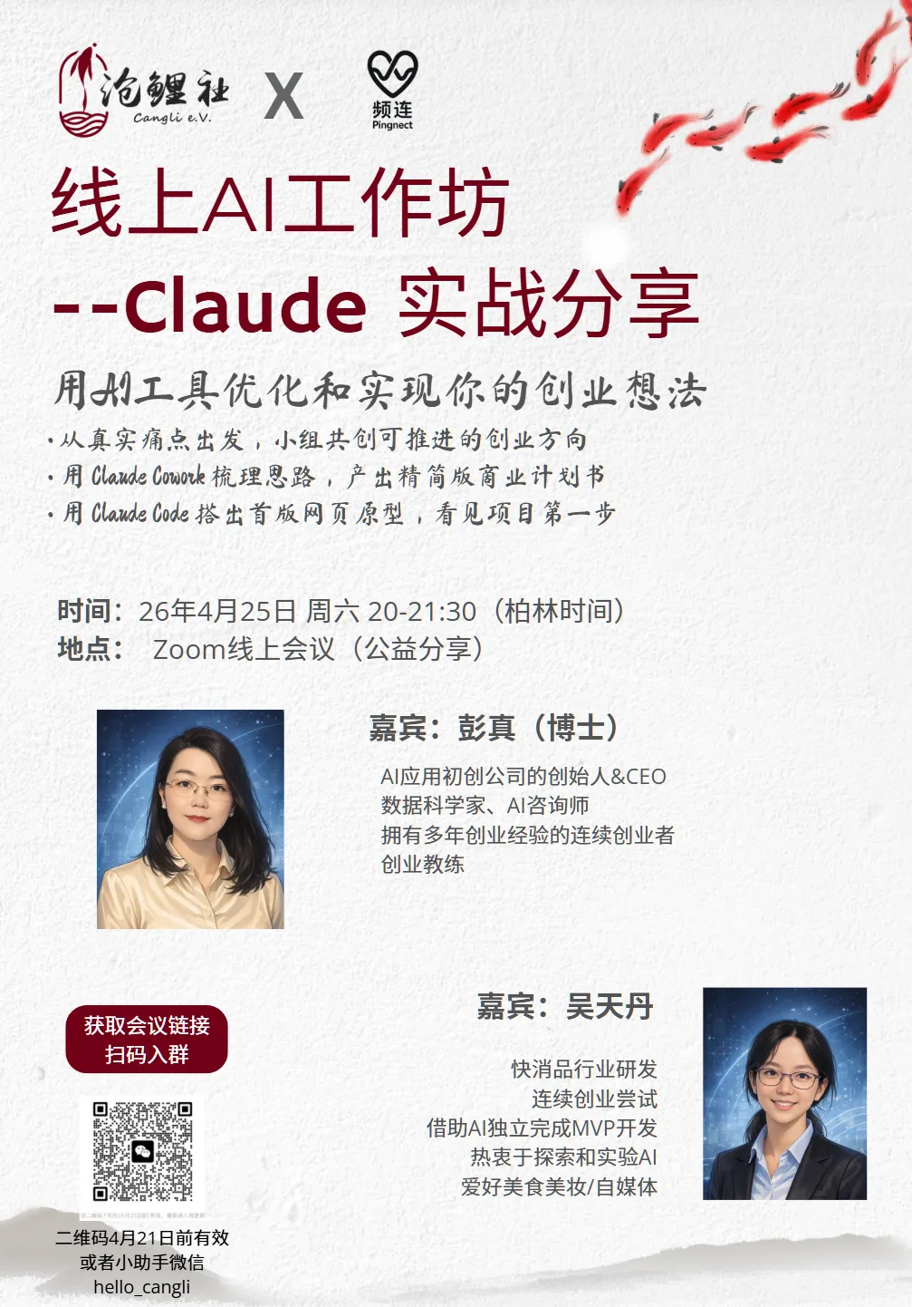 4月25日周六晚,我们将用充满互动和实操的方式,现场教学,带大家入门Claude Code和Claude Cowork 这个强大的AI工具。