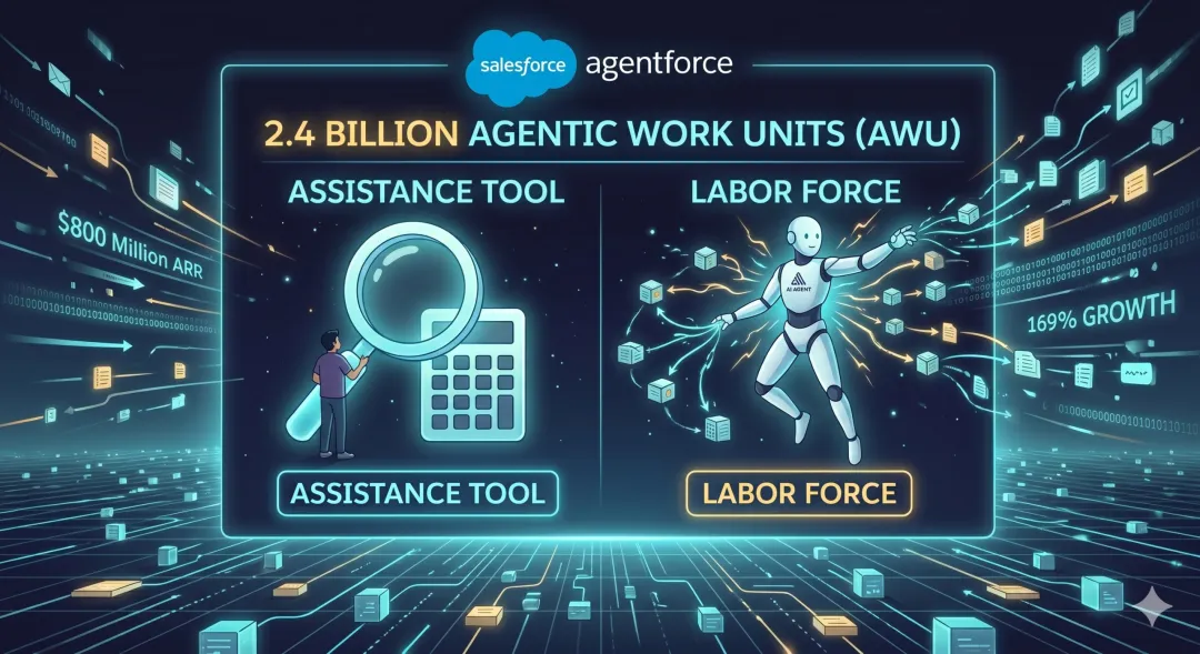 Salesforce 的 Agentforce 平台发明了一个全新的业务指标:Agentic Work Units(AWU)。用来衡量 AI Agent 独立完成了多少个任务单元。截至目前,这个数字是惊人的 24 亿个 AWU。
