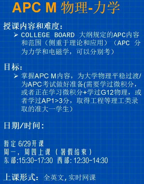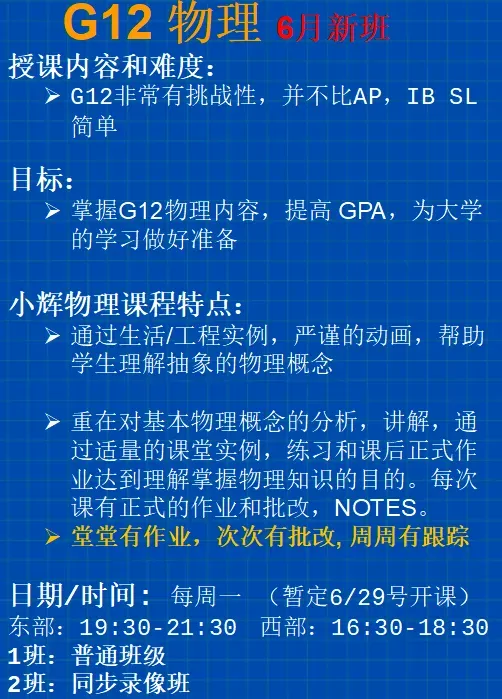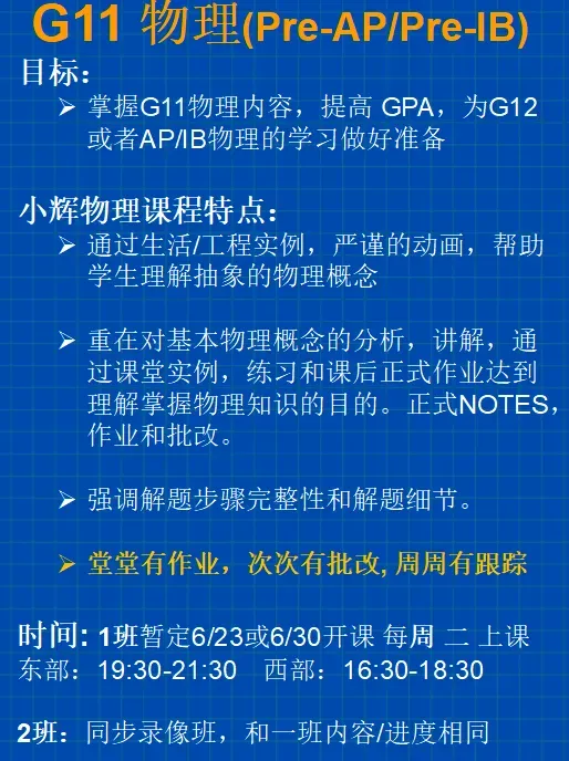 G11/Pre-AP/PreIB物理 6 月底暑假新班 +新课表