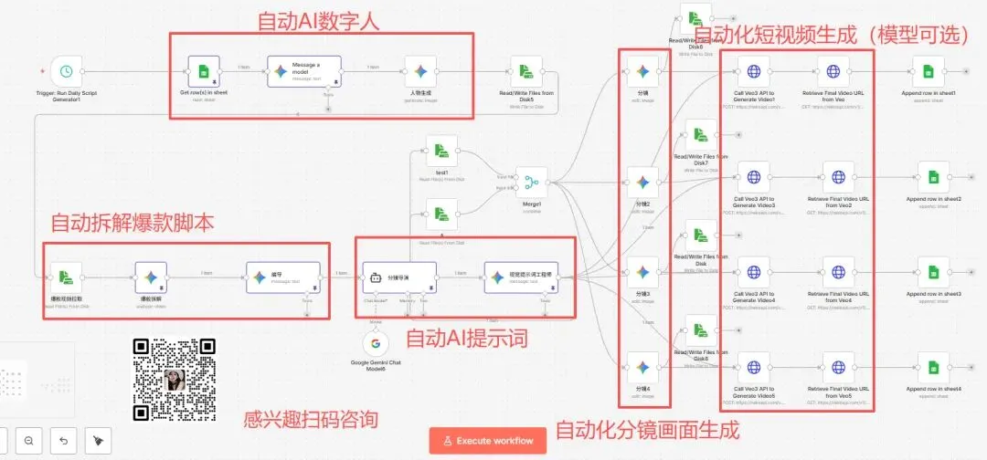 n8n 产出案例:原创短视频全自动化流中,n8n 承担了最重的活儿