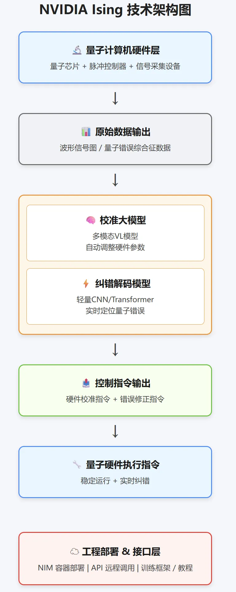 GitHub:https://github.com/NVIDIA/ising 官方技术博客:https://developer.nvidia.com/blog/nvidia-ising-introduces-ai-powered-workflows-to-build-fault-tolerant-quantum-systems 模型权重(Hugging Face):https://huggingface.co/collections/nvidia/nvidia-ising 英伟达新闻稿:https://nvidianews.nvidia.com/news/nvidia-launches-ising-the-worlds-first-open-ai-models-to-accelerate-the-path-to-useful-quantum-computers