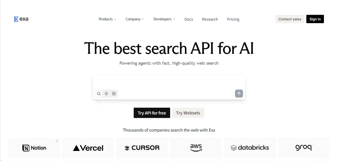- 简单的API集成:Exa AI提供简单易用的API,使得开发者可以轻松集成和使用其搜索功能。
