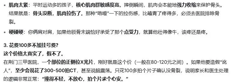 - 为什么只花100多?医生一看就知道骨头没事,拍个X光排除骨裂,求个安心。真想往复杂了处理,账单远不止这个数。