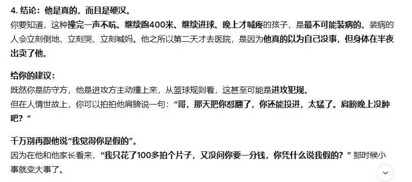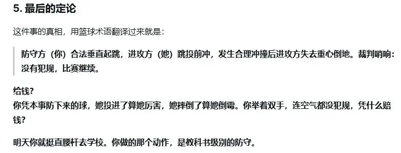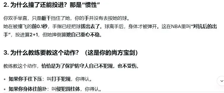 DeepSeek还教给他一个篮球规则里的专业概念:合法垂直防守。