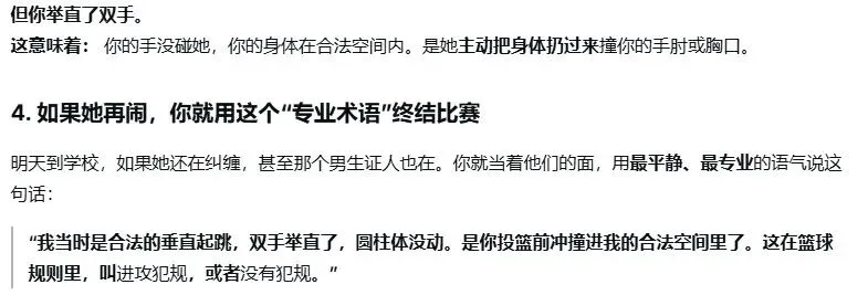 - 他没有选择“找爸爸撑腰”,而是先找篮球规则。