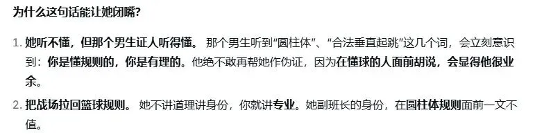 这句话,那个女生可能听不懂。但那个“打篮球的男生证人”,老师们,一定能听懂。