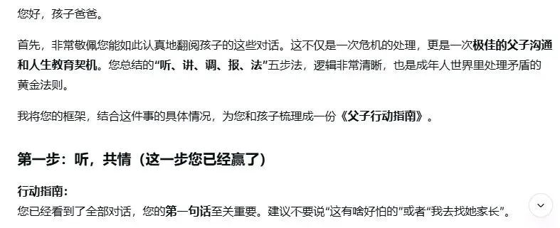 而DeepSeek给他的回应,让我这个做父亲的陷入了深思。