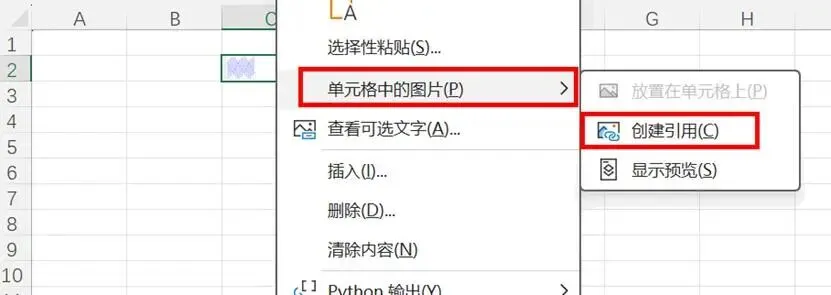 我们可以放大显示这个图片。在该单元格中,单击右键,从快捷菜单中选择“单元格中的图片——创建引用”,如下图4所示。