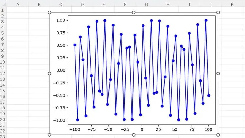 可以看到,上述代码在Excel中绘制了正弦函数的折线图。