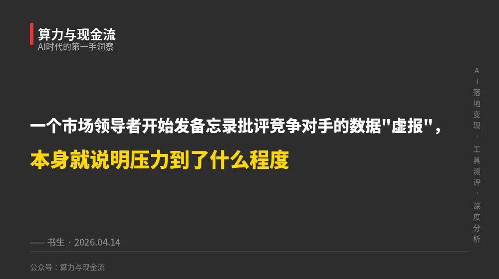 数字层面:Anthropic的ARR(年化经常性收入)从$9B增长到$30B,时间跨度10个月(来源:Altimeter Capital研究报告,2026-04-13)。但这里有一个重要争议——OpenAI在内部备忘录里指出,这$30B里有$8B来自Amazon和Google的收入分成,属于"虚计",把真实的产品收入夸大了(来源:Benzinga,2026-04-14)。