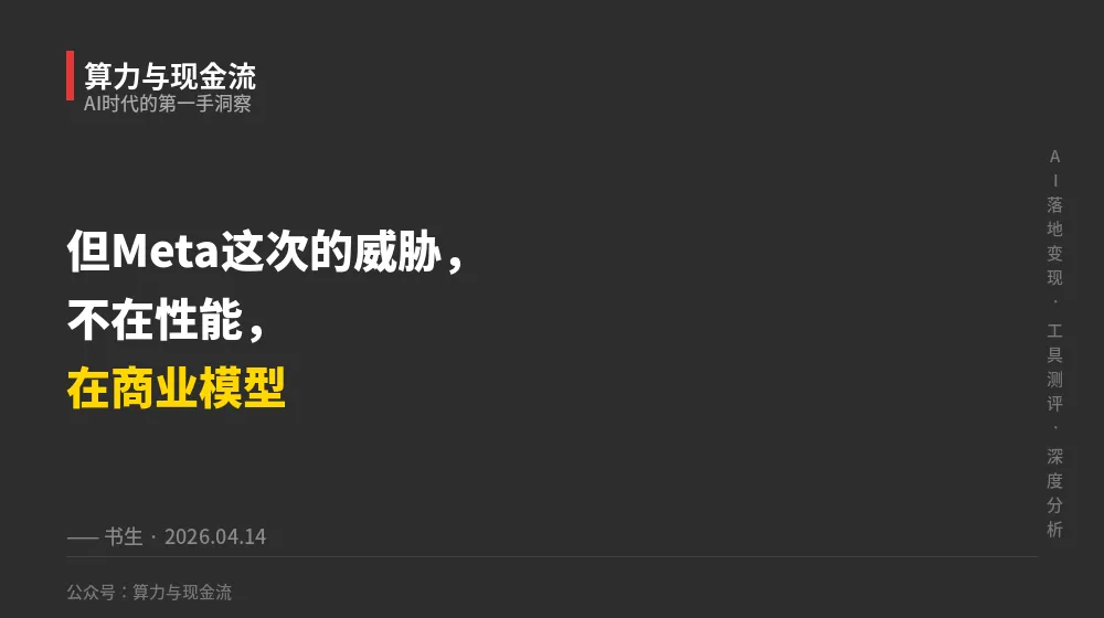 注:原稿中"Meta Muse Spark"为产品名错误,Meta 2026年4月发布的模型为Llama 4系列,本稿已全文更正。所有绑定该产品名的基准测试数据已对应更新至Meta官方技术报告口径。